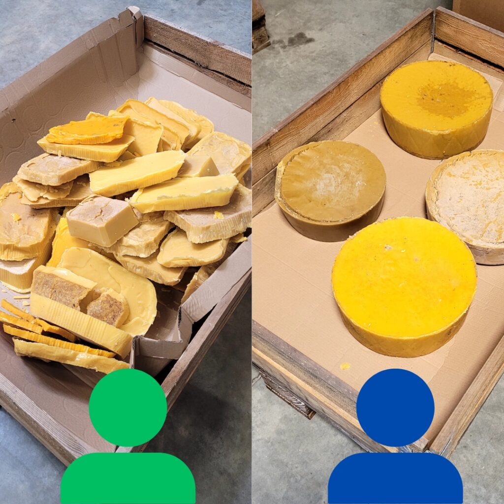 Que vous apportiez 25 ou 100 kg de cire, nous assurons un suivi rigoureux de votre quantité, sans approximation. Une étape essentielle pour une transformation sur mesure, au plus proche de vos attentes.